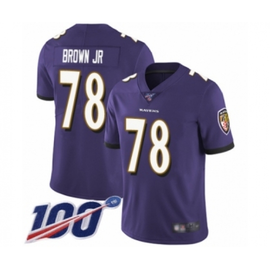 Men's Baltimore Ravens #78 Orlando Brown Jr. Purple Team Color Vapor Untouchable Limited Player 100th Season Football Jersey