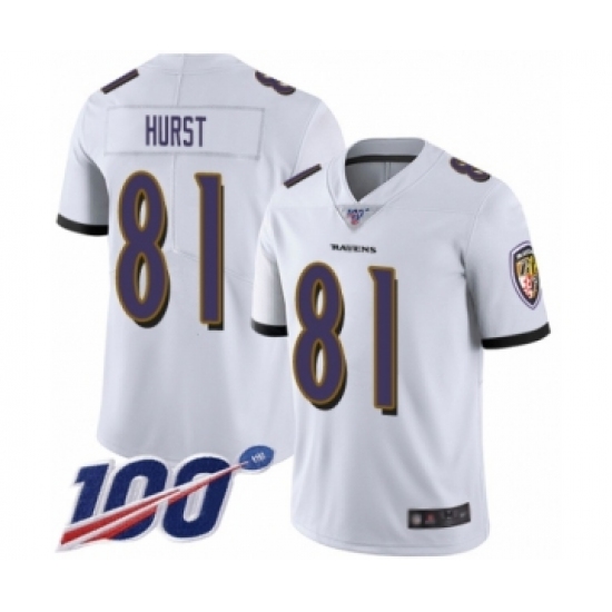 Men's Baltimore Ravens #81 Hayden Hurst White Vapor Untouchable Limited Player 100th Season Football Jersey