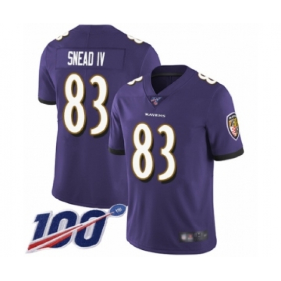 Men's Baltimore Ravens #83 Willie Snead IV Purple Team Color Vapor Untouchable Limited Player 100th Season Football Jersey