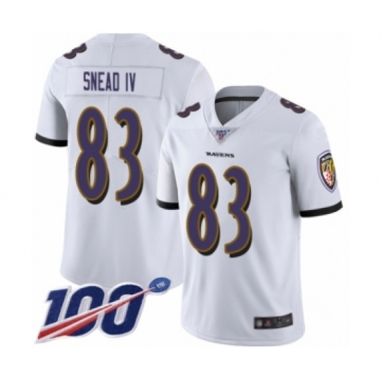>Men's Baltimore Ravens #83 Willie Snead IV White Vapor Untouchable Limited Player 100th Season Football Jersey