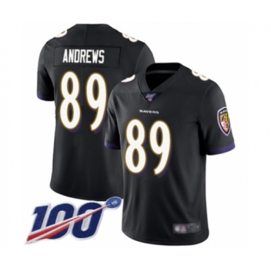 >Men's Baltimore Ravens #89 Mark Andrews Black Alternate Vapor Untouchable Limited Player 100th Season Football Jersey