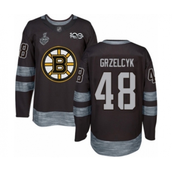 Men's Boston Bruins #48 Matt Grzelcyk Authentic Black 1917-2017 100th Anniversary 2019 Stanley Cup Final Bound Hockey Jersey