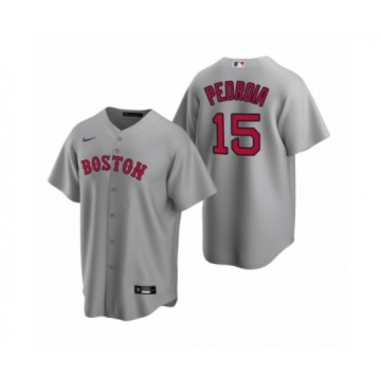 >Men's Boston Red Sox #15 Dustin Pedroia Nike Gray Replica Road Jersey