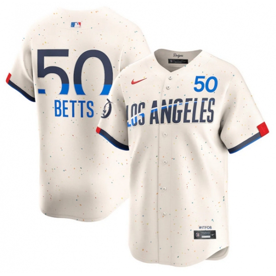 Men's Brooklyn Dodgers #50 Mookie Betts Cream 2024 City Connect Limited Stitched Baseball Jersey