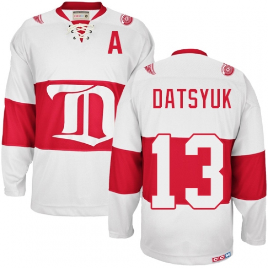 Men's CCM Detroit Red Wings #13 Pavel Datsyuk Authentic White Winter Classic Throwback NHL Jersey