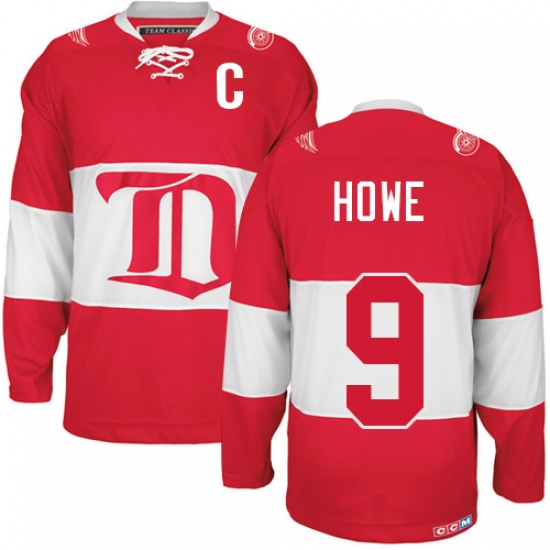 Men's CCM Detroit Red Wings #9 Gordie Howe Authentic Red Winter Classic Throwback NHL Jersey