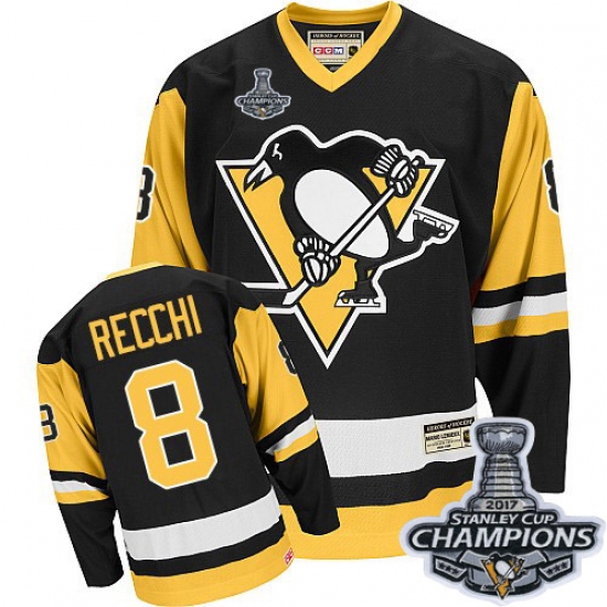 Men's CCM Pittsburgh Penguins #8 Mark Recchi Premier Black Throwback 2017 Stanley Cup Champions NHL Jersey
