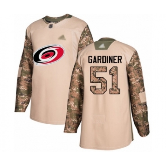 >Men's Carolina Hurricanes #51 Jake Gardiner Authentic Camo Veterans Day Practice Hockey Jersey