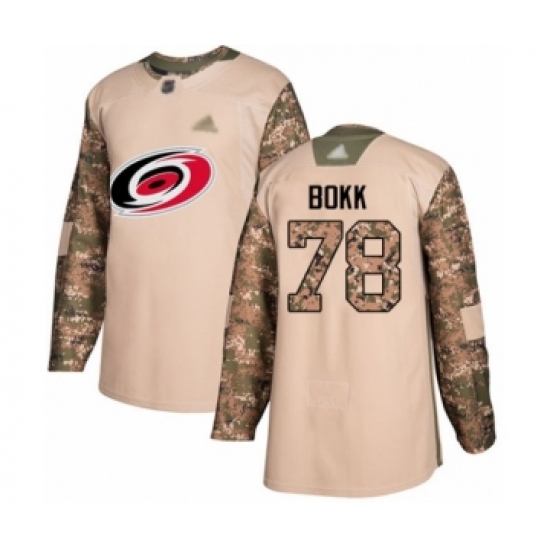 Men's Carolina Hurricanes #78 Dominik Bokk Authentic Camo Veterans Day Practice Hockey Jersey