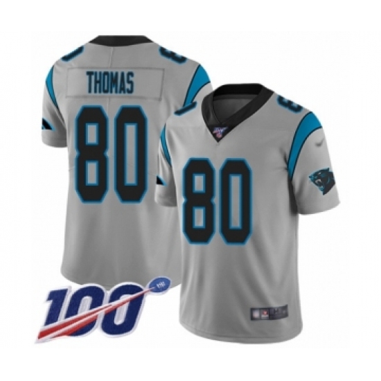 Men's Carolina Panthers #80 Ian Thomas Silver Inverted Legend Limited 100th Season Football Jersey