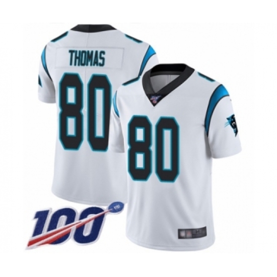 >Men's Carolina Panthers #80 Ian Thomas White Vapor Untouchable Limited Player 100th Season Football Jersey