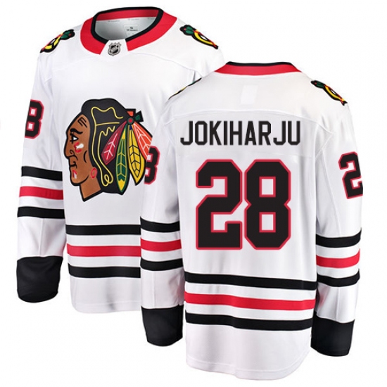 Home>NHL>Chicago Blackhawks>Henri Jokiharju>Men's Chicago Blackhawks #28 Henri Jokiharju Fanatics Branded White Away Breakaway NHL Jersey