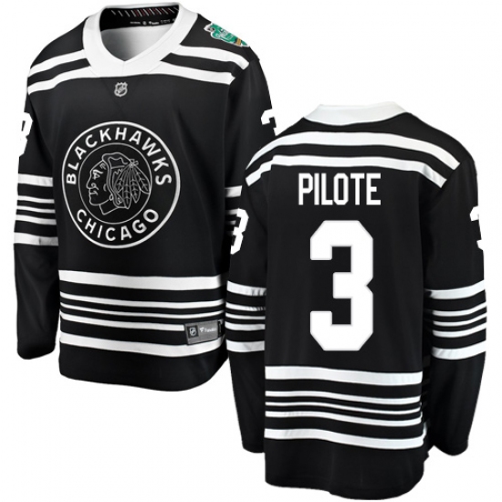 >Men's Chicago Blackhawks #3 Pierre Pilote Black 2019 Winter Classic Fanatics Branded Breakaway NHL Jersey