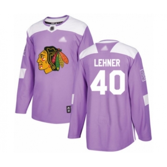 >Men's Chicago Blackhawks #40 Robin Lehner Authentic Purple Fights Cancer Practice Hockey Jersey