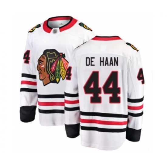 Men's Chicago Blackhawks #44 Calvin De Haan Authentic White Away Fanatics Branded Breakaway Hockey Jersey