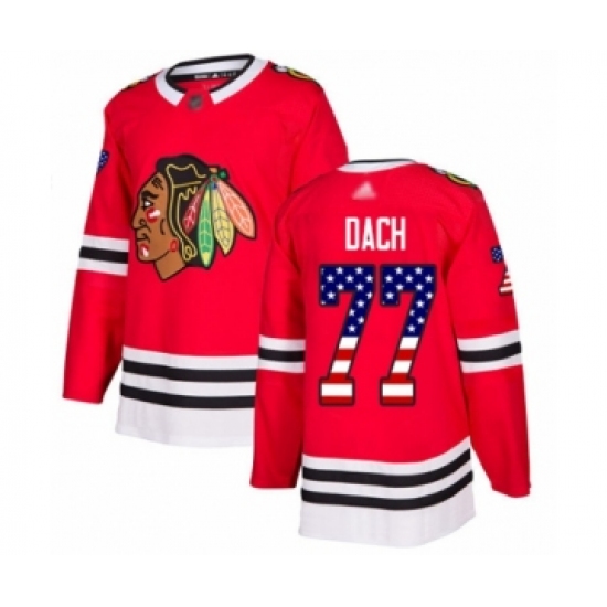 Men's Chicago Blackhawks #77 Kirby Dach Authentic Red USA Flag Fashion Hockey Jersey