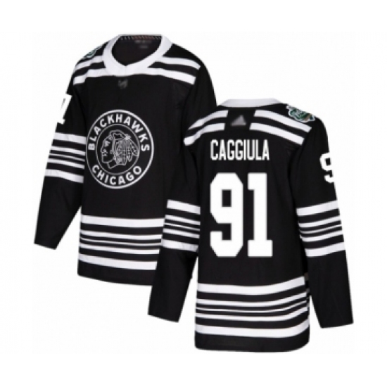 Men's Chicago Blackhawks #91 Drake Caggiula Authentic Black 2019 Winter Classic Hockey Jersey