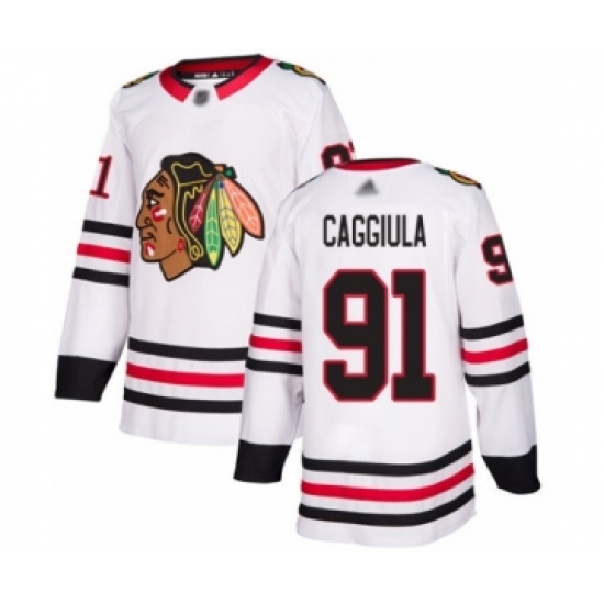 Men's Chicago Blackhawks #91 Drake Caggiula Authentic White Away Hockey Jersey