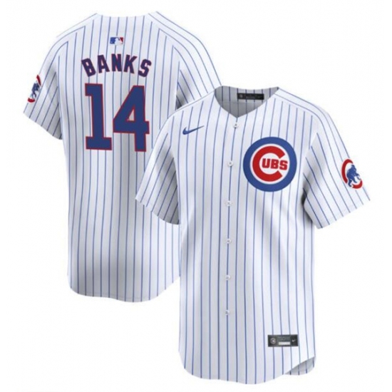 >Men's Chicago Cubs #14 Ernie Banks White Cool Base Stitched Baseball Jersey