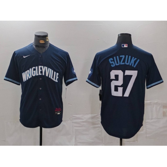Men's Chicago Cubs #27 Seiya Suzuki Navy City Connect Cool Base Stitched Jersey
