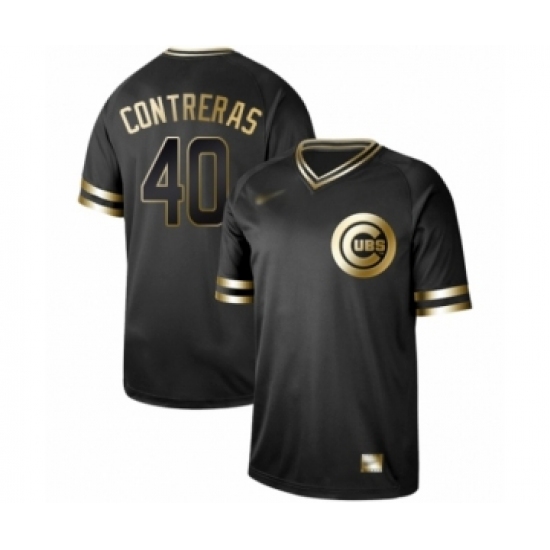 >Men's Chicago Cubs #40 Willson Contreras Authentic Black Gold Fashion Baseball Jersey