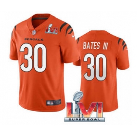 Men's Cincinnati Bengals #30 Jessie Bates III 2022 Orange Super Bowl LVI Vapor Limited Stitched Jersey