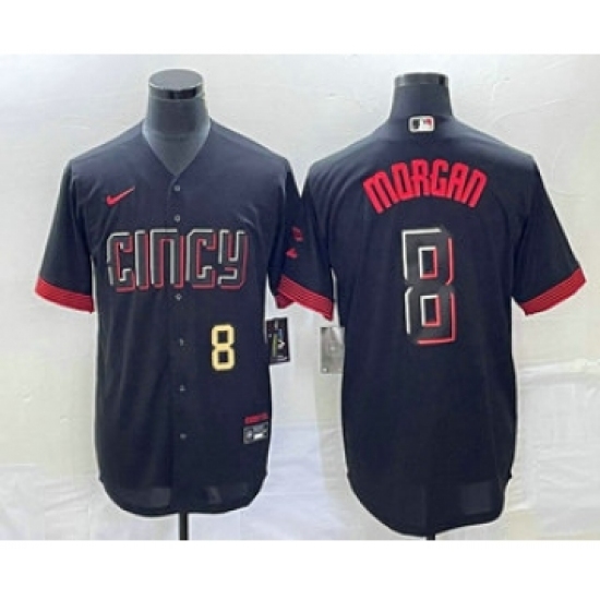 Men's Cincinnati Reds #8 Joe Morgan Number Black 2023 City Connect Cool Base Stitched Jersey 1