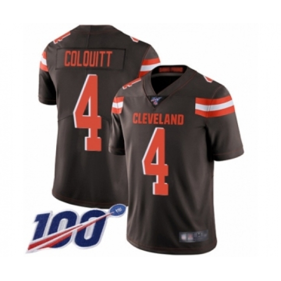 Men's Cleveland Browns #4 Britton Colquitt Brown Team Color Vapor Untouchable Limited Player 100th Season Football Jersey