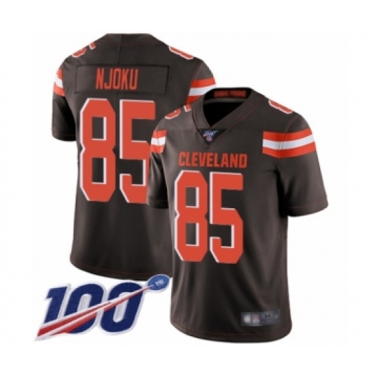 >Men's Cleveland Browns #85 David Njoku Brown Team Color Vapor Untouchable Limited Player 100th Season Football Jersey