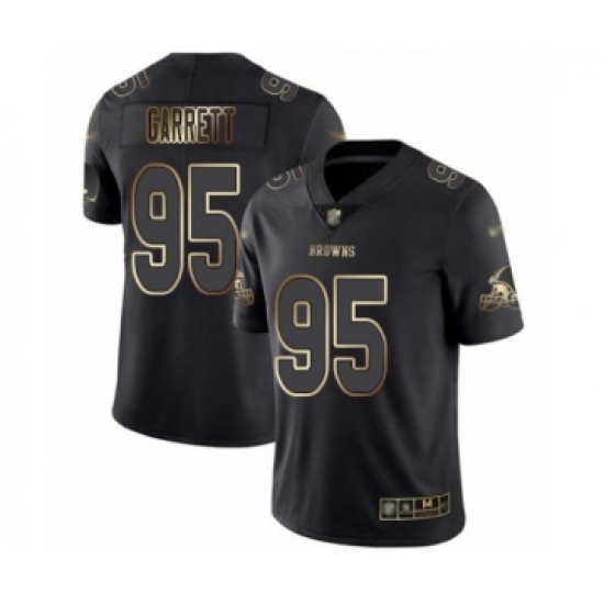 >Men's Cleveland Browns #95 Myles Garrett Black Gold Vapor Untouchable Limited Football Jersey