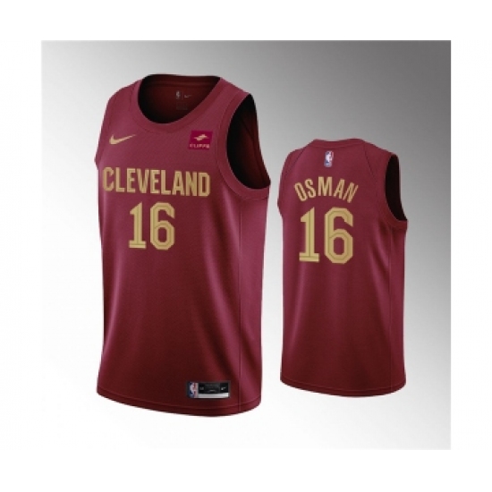 Men's Cleveland Cavaliers #16 Cedi Osman Wine Icon Edition Stitched Basketball Jersey