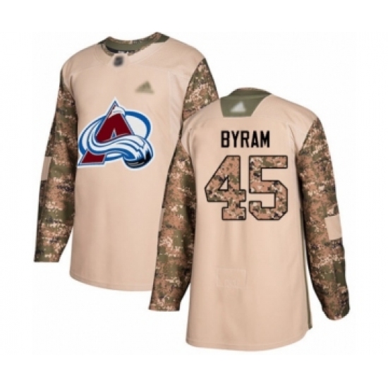>Men's Colorado Avalanche #45 Bowen Byram Authentic Camo Veterans Day Practice Hockey Jersey