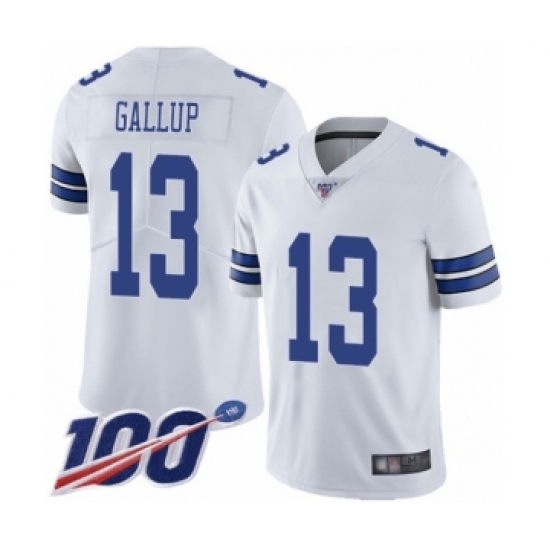 >Men's Dallas Cowboys #13 Michael Gallup White Vapor Untouchable Limited Player 100th Season Football Jersey