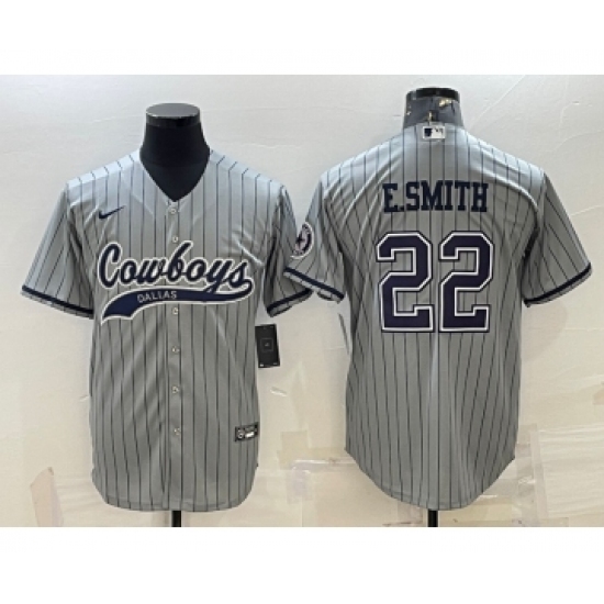 >Men's Dallas Cowboys #22 Emmitt Smith Grey With Patch Cool Base Stitched Baseball Jersey