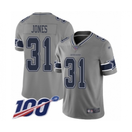 >Men's Dallas Cowboys #31 Byron Jones Limited Gray Inverted Legend 100th Season Football Jersey