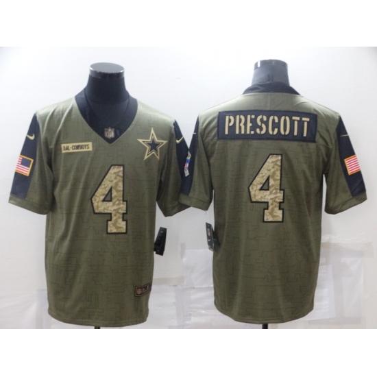 Men's Dallas Cowboys #4 Dak Prescott Camo 2021 Salute To Service Limited Player Jersey