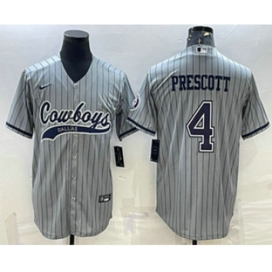 Men's Dallas Cowboys #4 Dak Prescott Grey Pinstripe With Patch Cool Base Stitched Baseball Jersey