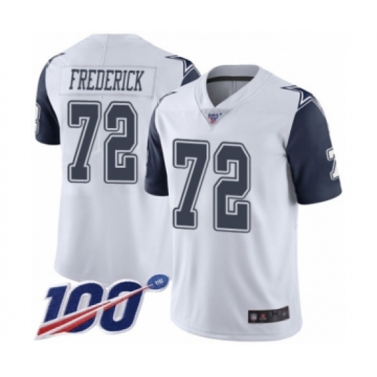 >Men's Dallas Cowboys #72 Travis Frederick Limited White Rush Vapor Untouchable 100th Season Football Jersey