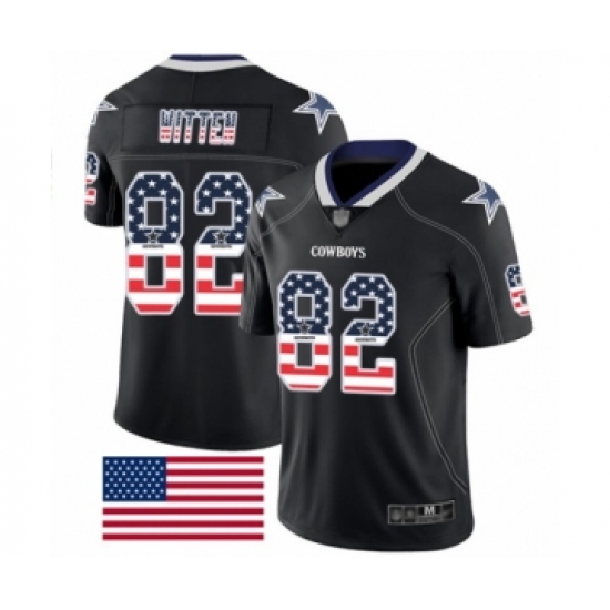 Men's Dallas Cowboys #82 Jason Witten Limited Black Rush USA Flag Football Jersey