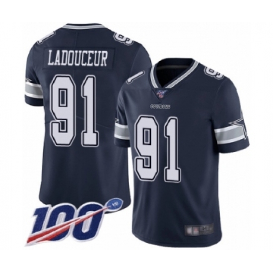 >Men's Dallas Cowboys #91 L. P. Ladouceur Navy Blue Team Color Vapor Untouchable Limited Player 100th Season Football Jersey