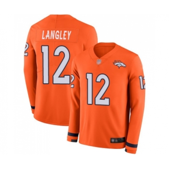 >Men's Denver Broncos #12 Brendan Langley Limited Orange Therma Long Sleeve Football Jersey