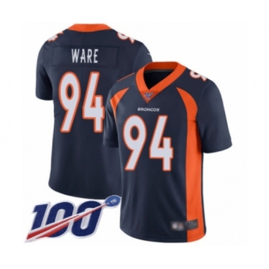 Men's Denver Broncos #94 DeMarcus Ware Navy Blue Alternate Vapor Untouchable Limited Player 100th Season Football Jersey
