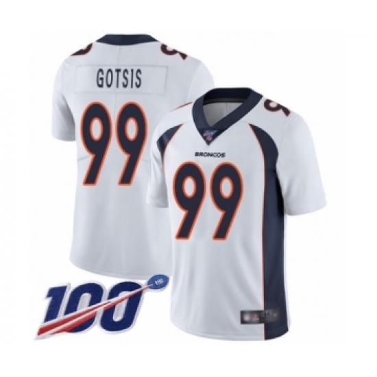 Men's Denver Broncos #99 Adam Gotsis White Vapor Untouchable Limited Player 100th Season Football Jersey