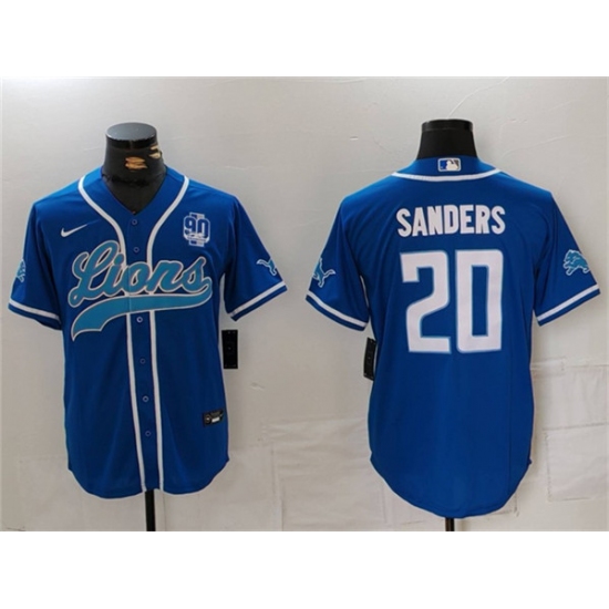 Men's Detroit Lions #20 Barry Sanders Blue With 90th Anniversary Cool Base Stitched Baseball Jersey
