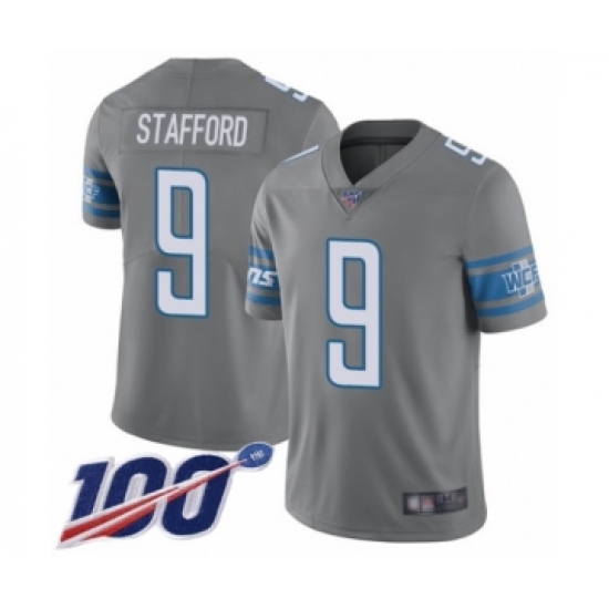 Men's Detroit Lions #9 Matthew Stafford Limited Steel Rush Vapor Untouchable 100th Season Football Jersey