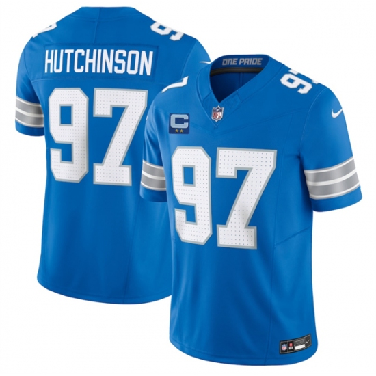 Men's Detroit Lions #97 Aidan Hutchinson Blue 2025 F.U.S.E. With 2-Star C Vapor Limited Football Stitched Game Jersey
