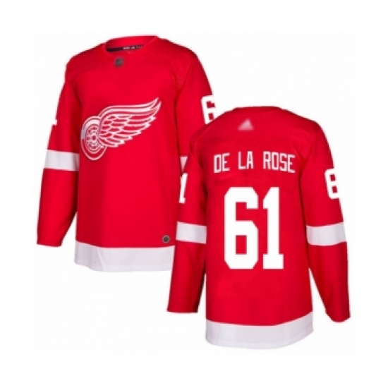 >Men's Detroit Red Wings #61 Jacob de la Rose Authentic Red Home Hockey Jersey