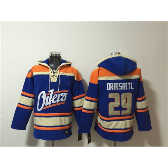 Men's Edmonton Oilers #29 Leon Draisaitl Blue Lace-Up Pullover Hoodie