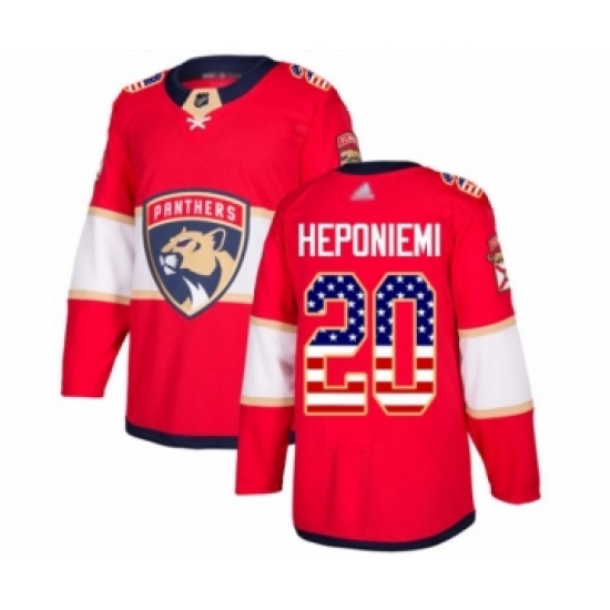 >Men's Florida Panthers #20 Aleksi Heponiemi Authentic Red USA Flag Fashion Hockey Jersey
