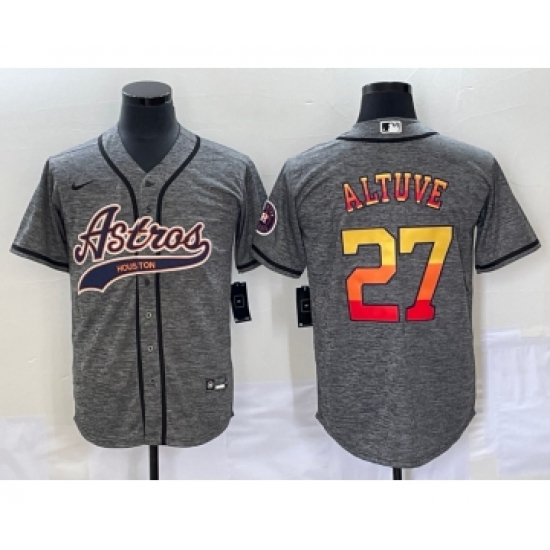 Men's Houston Astros #27 Jose Altuve Grey Gridiron Cool Base Stitched Baseball Jersey